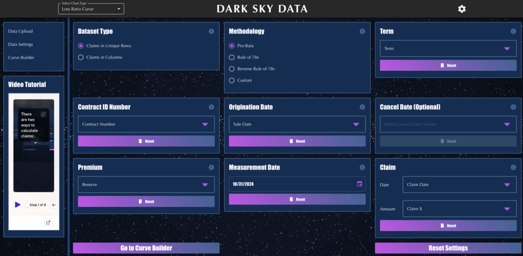 The tool takes your earned premium and claims data and turns it into clear, time-aligned curves that show how loss ratios develop month by month. Every record is aligned from Month 1 forward, so you can see true performance by vintage, product, dealer, or any segment in your file.