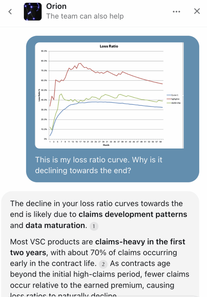 Orion explained that the trend was due to claims development patterns and data maturation — exactly the kind of nuanced insight you’d expect from a senior analyst.